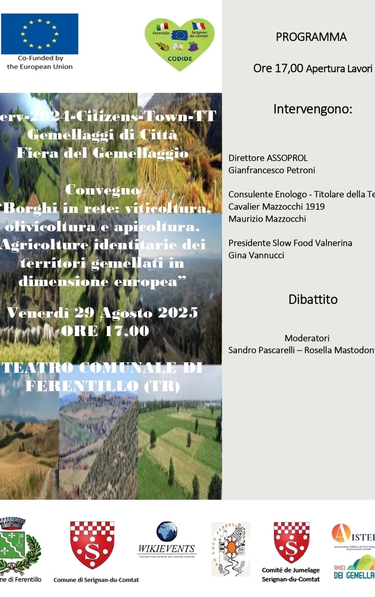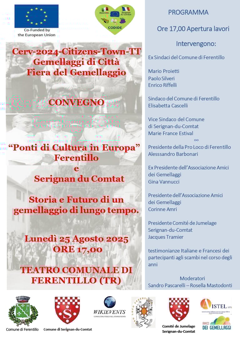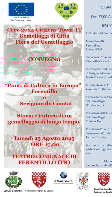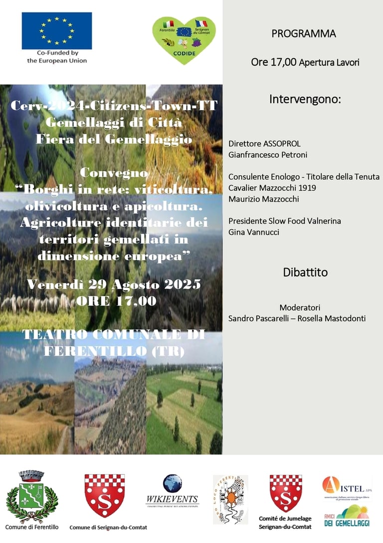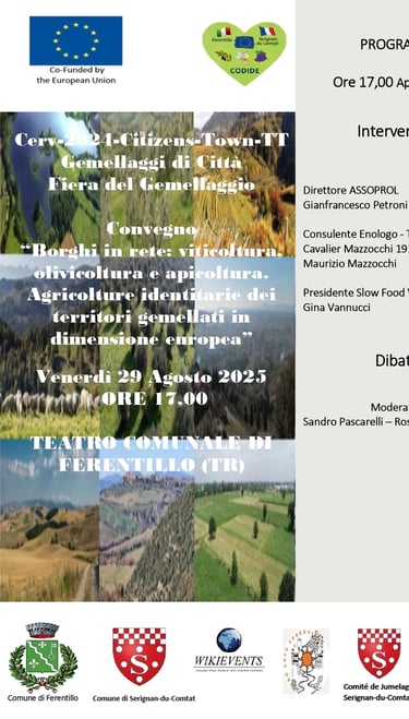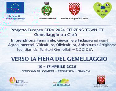 Scopri il progetto europeo Codide e la fiera di gemellaggio tra Ferentillo e Sérignan-du-Comtat, sostenuto dall'Unione Europea per promuovere cultura e tradizioni locali.