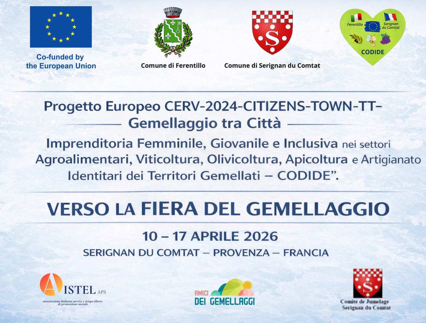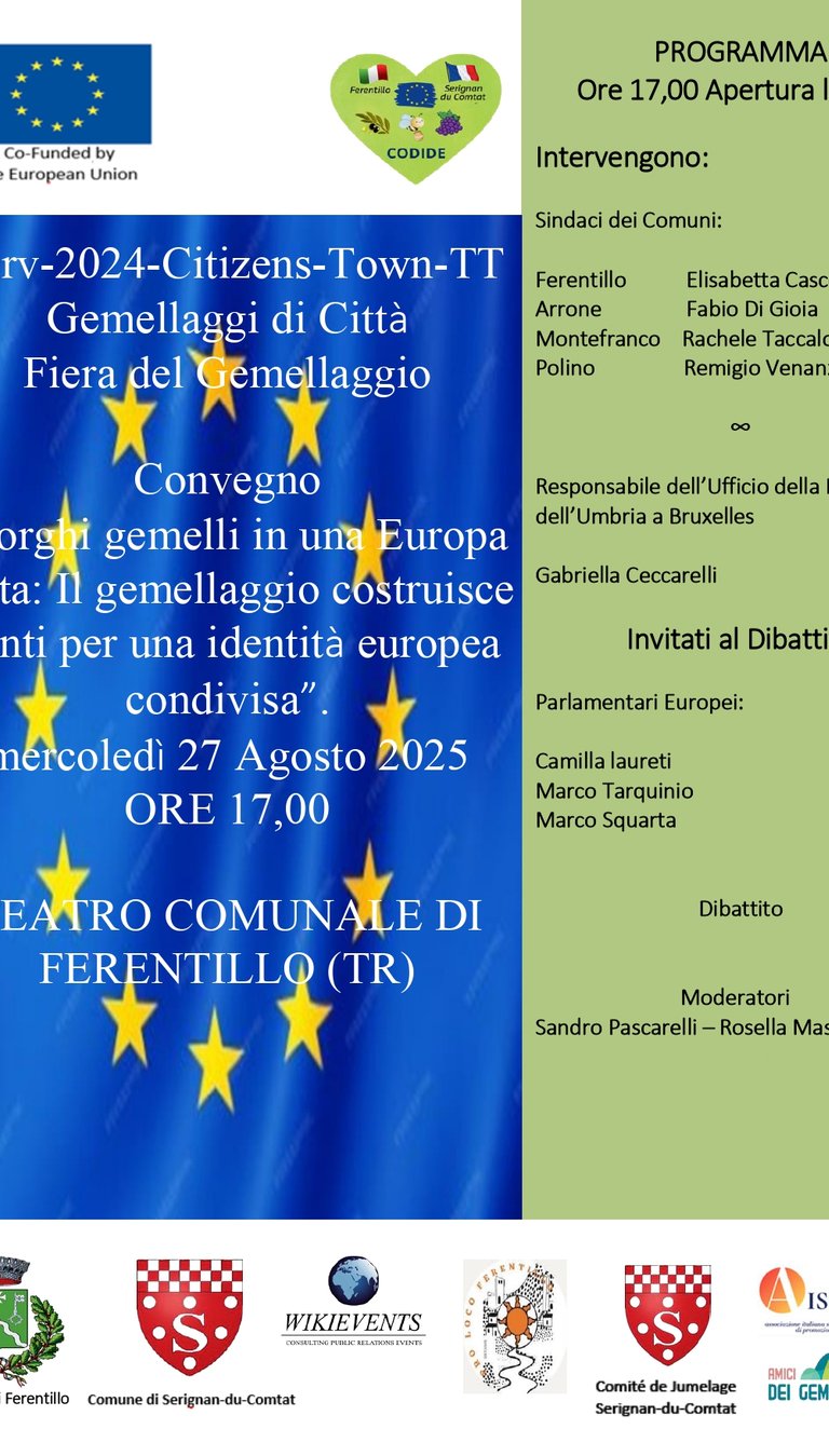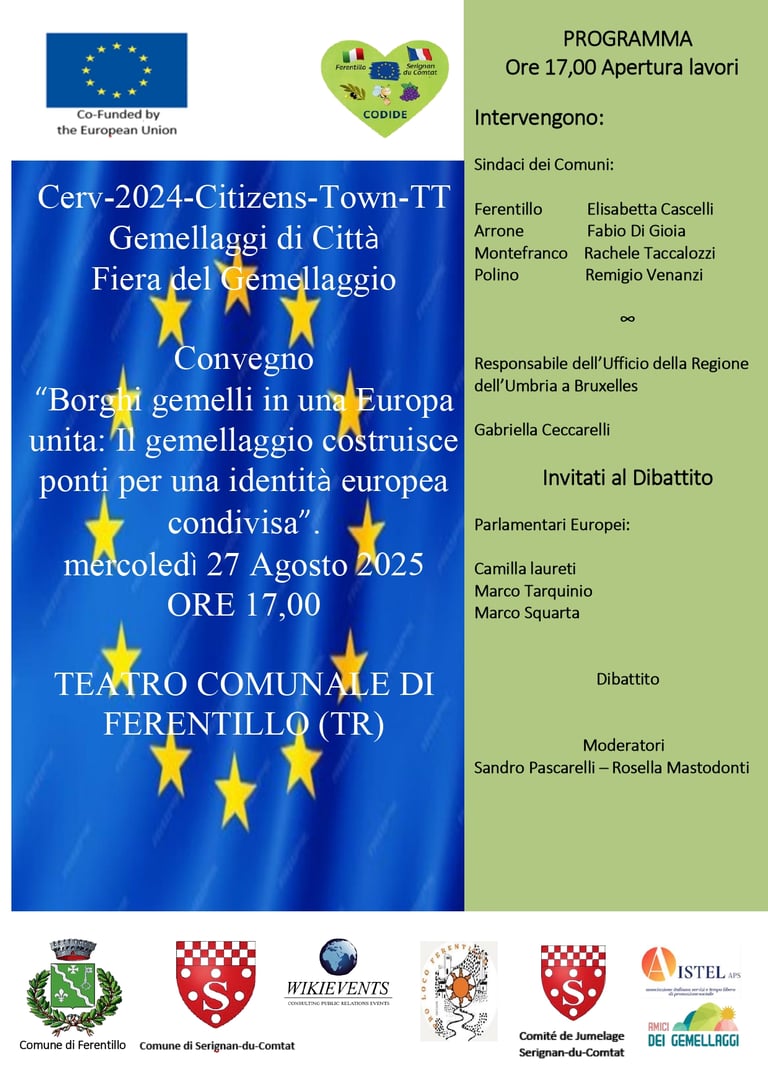 Scopri il progetto europeo Codide e la fiera di gemellaggio tra Ferentillo e Sérignan-du-Comtat, sostenuto dall'Unione Europea per promuovere cultura e tradizioni locali.