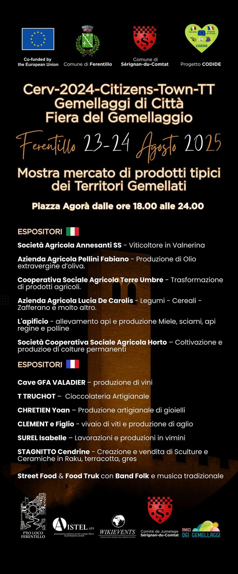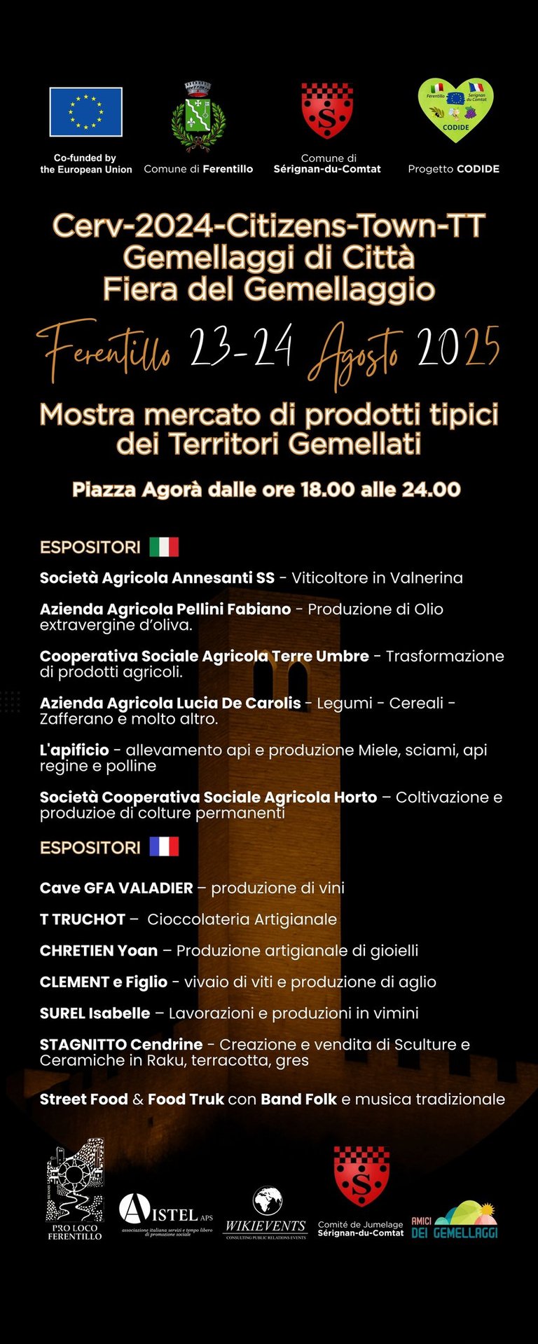 Fiera del gemellaggio Ferentillo Serignan-du-Comtat. Ferentillo 23-30 Agosto 2025.