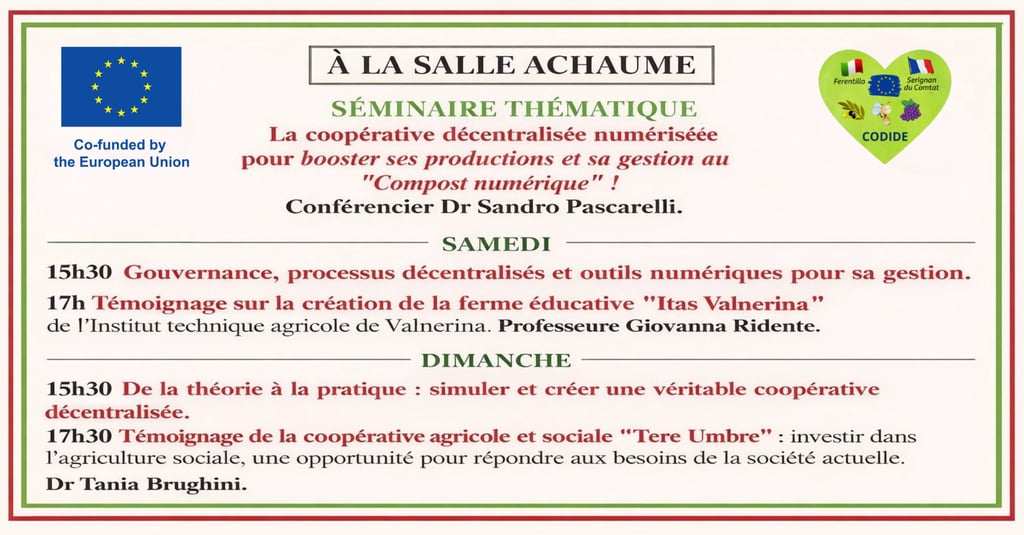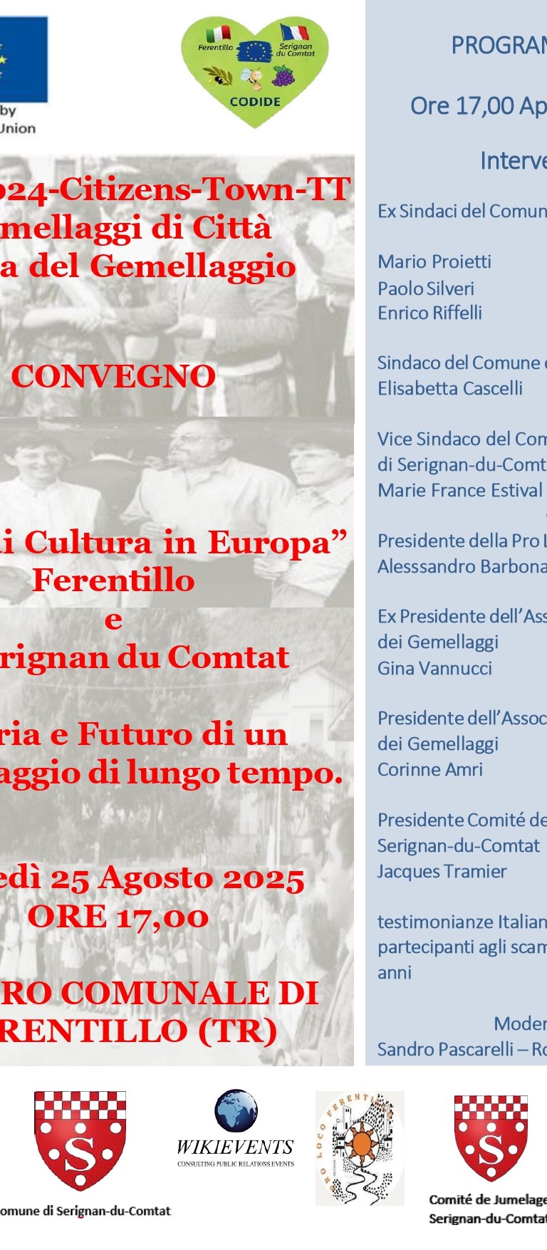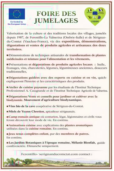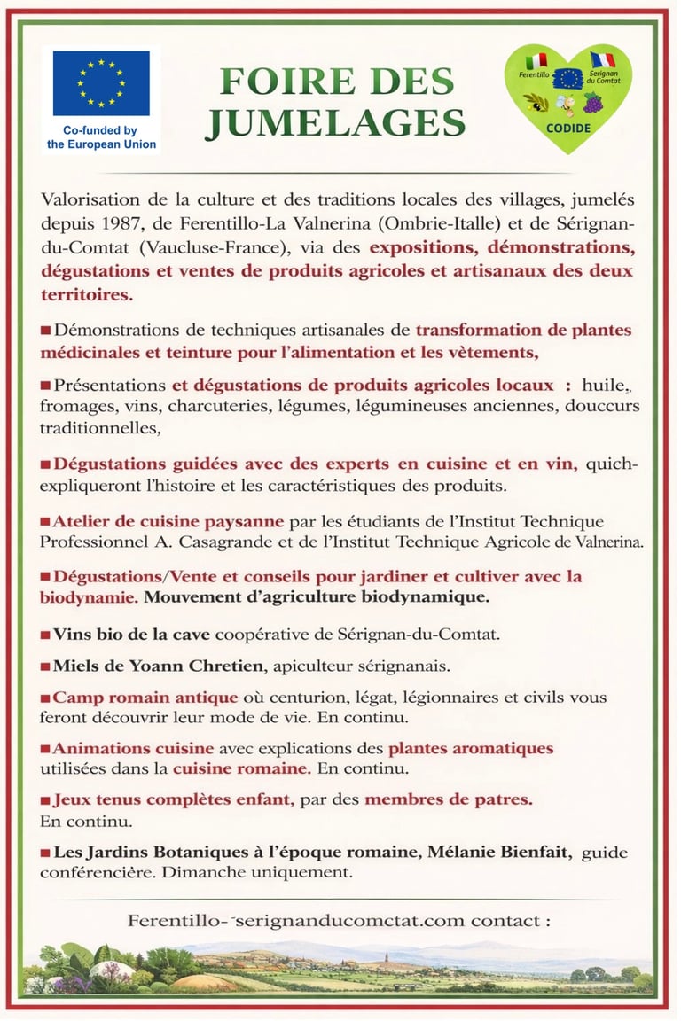Découvrez le projet européen Codide et la foire de jumelage entre Ferentillo et Sérignan-du-Comtat, soutenu par l’Union européenne pour promouvoir la culture et les traditions locales.